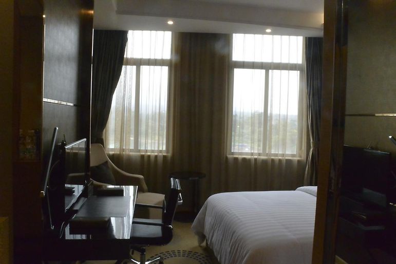 Situado a 2,8 km del Elobey Grande, Hotel Anda China Malabo ofrece un centro balneario, una sauna y un centro de spa. El Parque Nacional de Malabo está a menos de 2,1 km de distancia. Ubicación Este hotel se encuentra a 4 km del centro de Malabo y a solo 10 minutos en coche del aeropuerto Malabo. El hotel cuenta con 62 habitaciones lujosas que cuentan con un hervidor eléctrico, una nevera y cristalería en la cocina y otras comodidades modernas. Habitaciones Todas las habitaciones del hotel disponen de TV con múltiples canales, servicio de planchado y un escritorio. También incluyen un baño privado con un gorro de ducha, albornoces y toallas de baño. Comer y beber El restaurante se abre cada día para el desayuno. Hong Kong Restaurant es un restaurante que sirve comida asiática, siendo el lugar ideal para disfrutar de su viaje. Ocio y Negocios El hotel también ofrece instalaciones como un casino, una pista de tenis y un bar en el sitio. Los huéspedes pueden hacer ejercicio en un centro de fitness durante su estancia. Internet Internet inalámbrico está disponible en zonas públicas gratis..